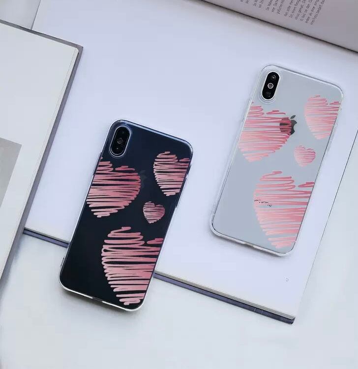 KT-0343 ハート 手書き風 クリア シンプル iPhone スマホケース お洒落 ユニーク キュート 可愛い
