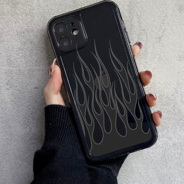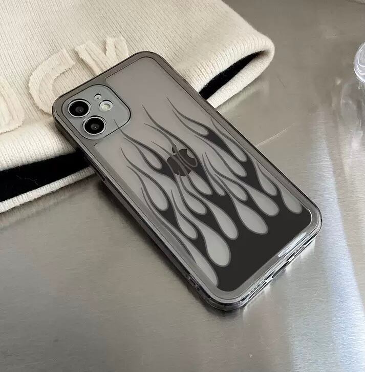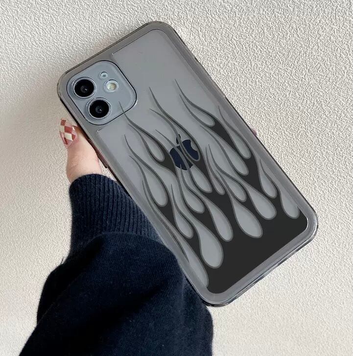 KT-0347 炎 ブラック クリア シンプル iPhone スマホケース お洒落 ユニーク キュート 可愛い