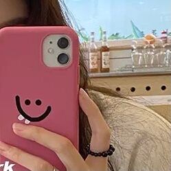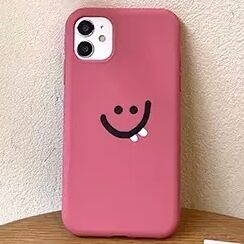 KT-0361 ピンク スマイル ユニーク イラスト シンプル iPhone スマホケース お洒落 ユニーク キュート 可愛い