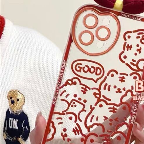 KT-0362 クリア レッド タイガー 虎 シンプル iPhone スマホケース お洒落 ユニーク キュート 可愛い