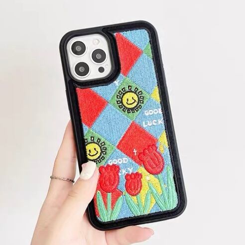 KT-0365 刺繍 サンシャインフラワー キャラ シンプル iPhone スマホケース お洒落 ユニーク キュート 可愛い