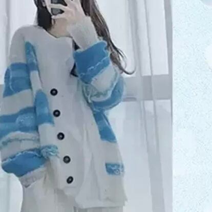 NT-0210 スカイブルー ボーダー カーディガン ニット トップス レディース シンプル 可愛い カジュアル 長袖 お洒落