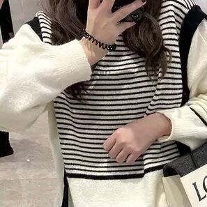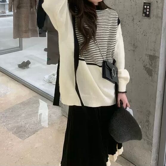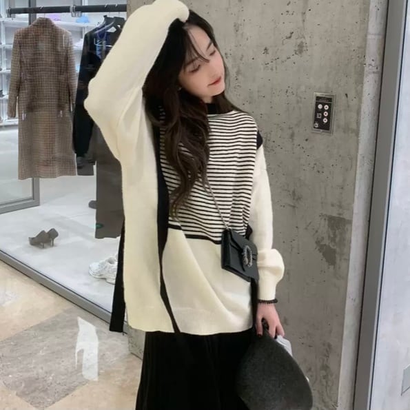 NT-0211 ストライプ デザイン ボーダー ニット トップス レディース シンプル 可愛い カジュアル 長袖 お洒落