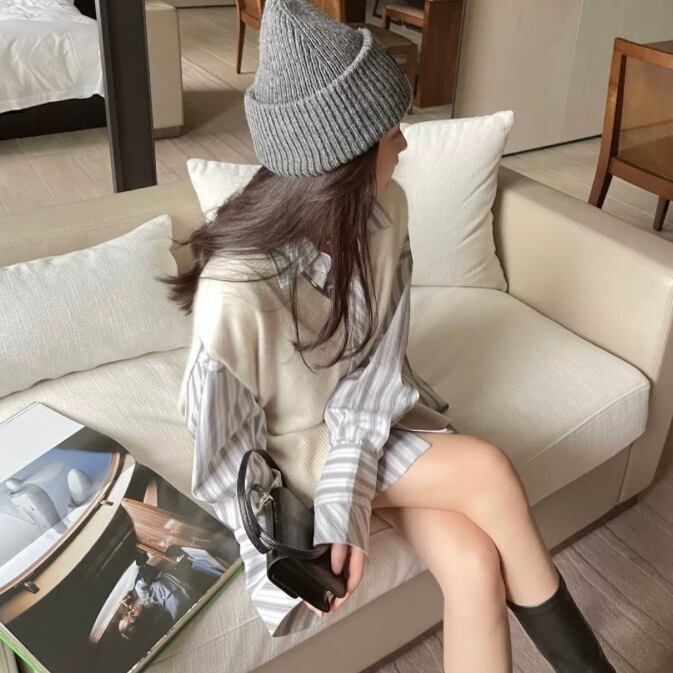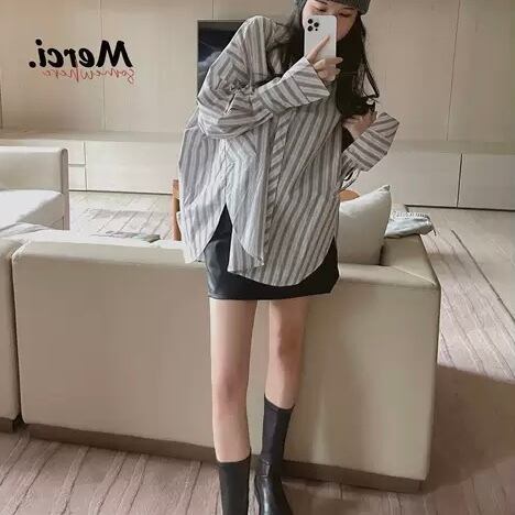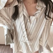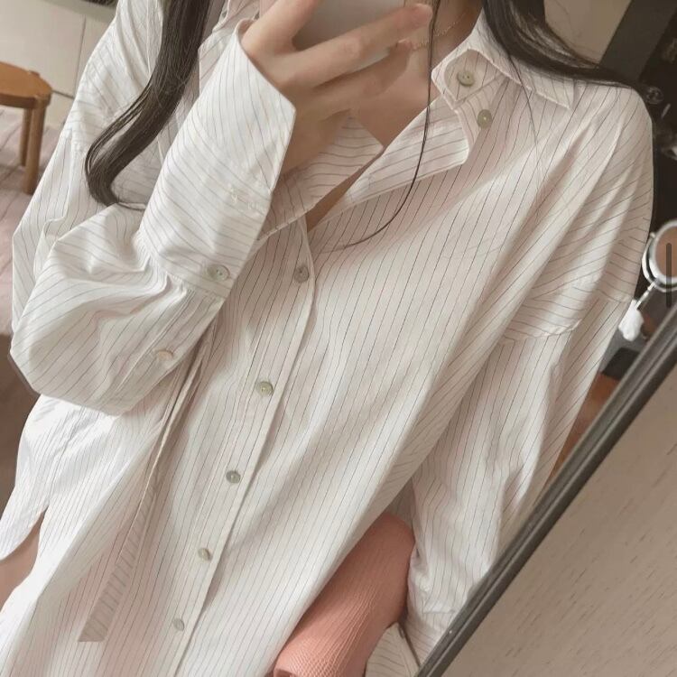 BL-0191 ナチュラル ストライプ シャツ 襟付き トップス レディース シンプル 可愛い カジュアル 長袖 お洒落