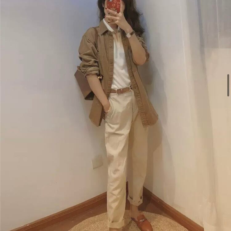 BL-0192 レトロ ブラウン ナチュラル シャツ 襟付き トップス レディース シンプル 可愛い カジュアル 長袖 お洒落