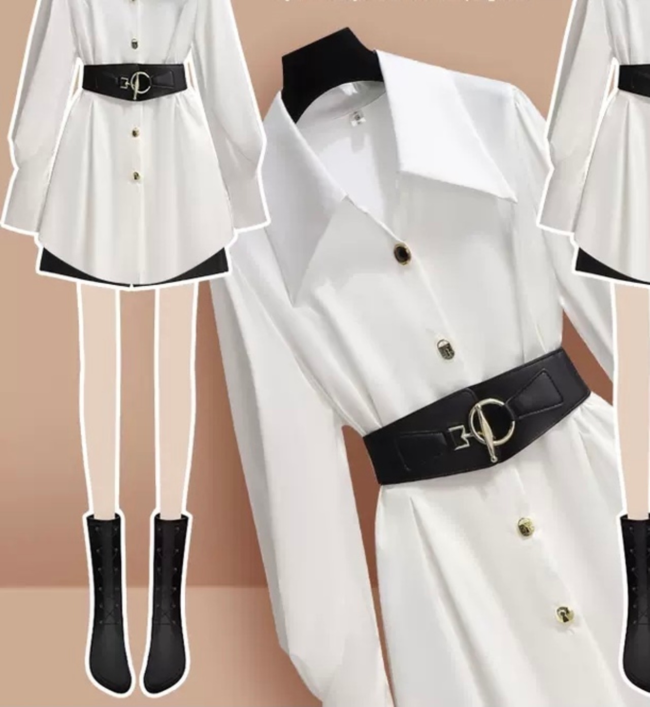 BL-0196 ミッドレングスシャツ シック ウエストトップ ホワイト ナチュラル シャツ トップス レディース シンプル 可愛い きれいめ 長袖 お洒落