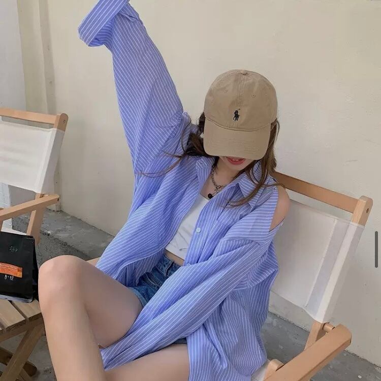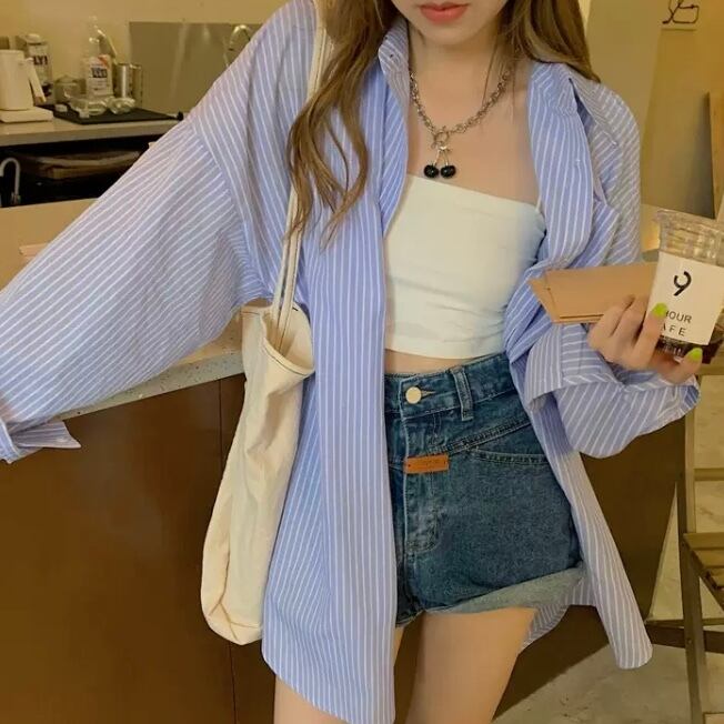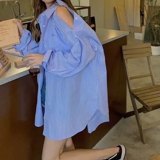 BL-0201 ストライプ パステルカラー シャツ レディース ルーズ 長袖 トップス シンプル 可愛い きれいめ お洒落