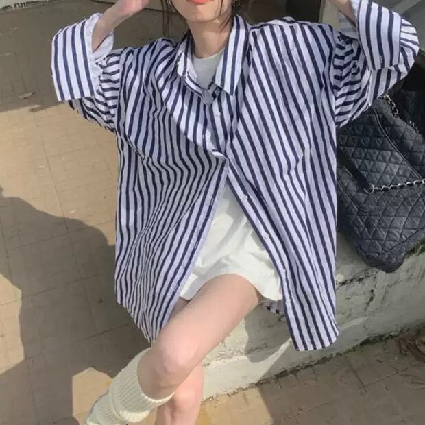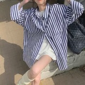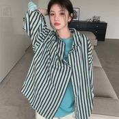 BL-0206 クラシック ストライプ オーバーサイズ シャツ レディース 長袖 ルーズ トップス シンプル 可愛い カジュアル お洒落