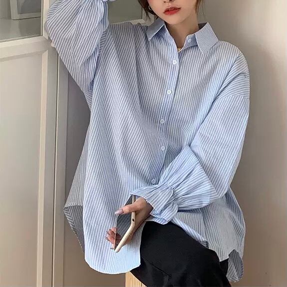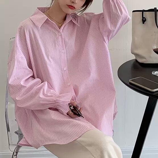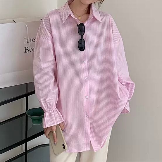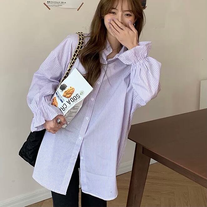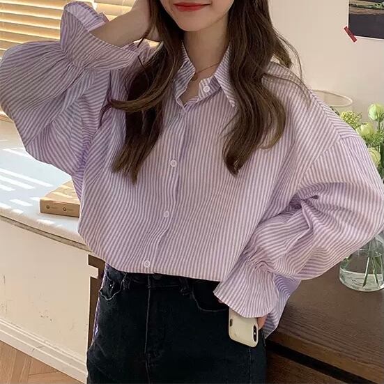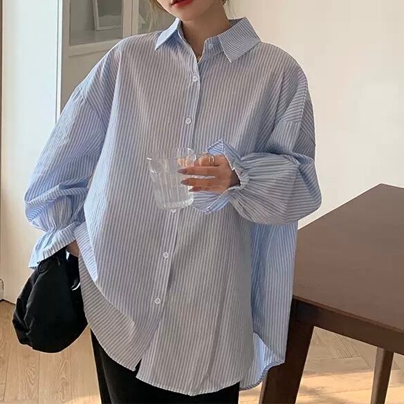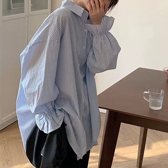 BL-0217 花びらスリーブ ストライプ ブラウス 長袖 シャツ カジュアル レディース トップス シンプル 可愛い カジュアル お洒落