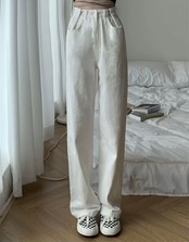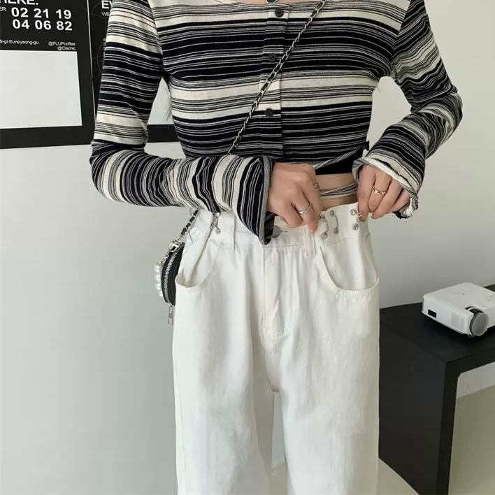 PT-0169 ホワイト コットンジーンズ パンツ ストレート スウィート デニム レディース ハイウエスト パンツ きれいめ 可愛い お洒落 シンプル