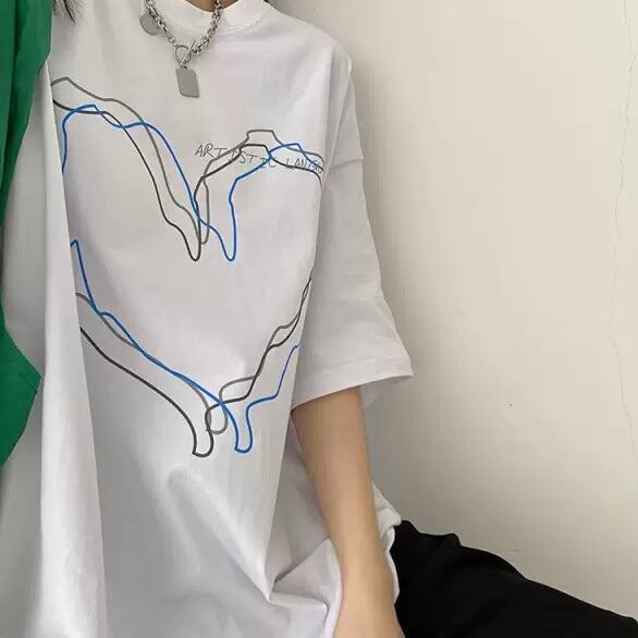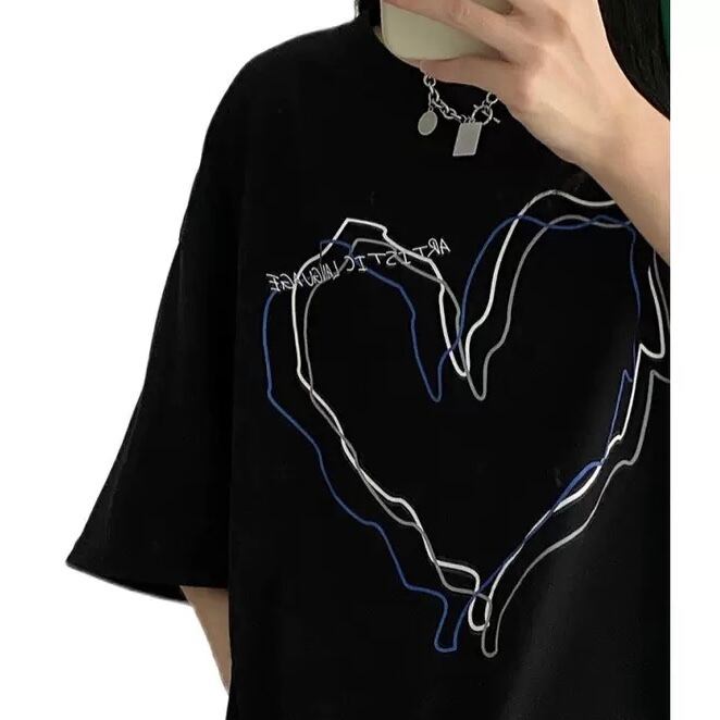 TS-0428 グラフィック ハート 半袖 Tシャツ プリント レディース トップス シンプル 可愛い カジュアル お洒落