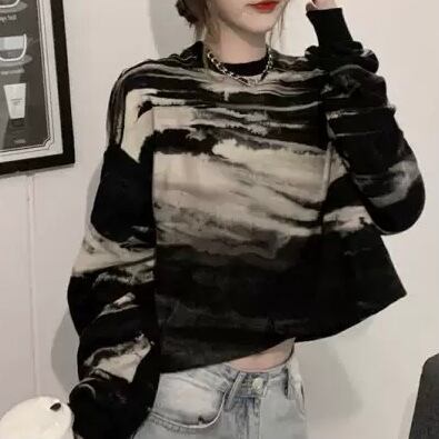 TS-0429 タイダイ 絞り染め 長袖 Tシャツ レディース ショート丈 グラフィック トップス シンプル 可愛い カジュアル お洒落