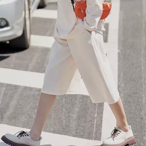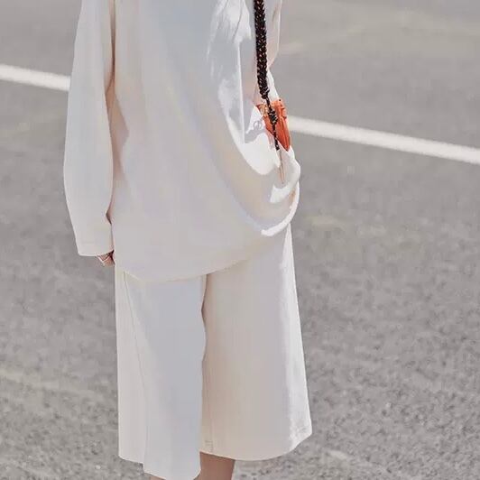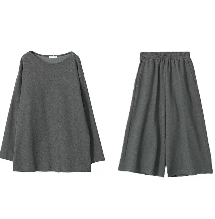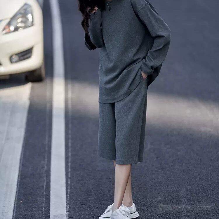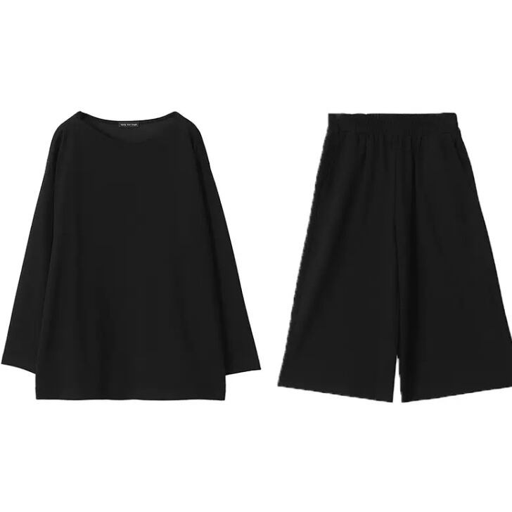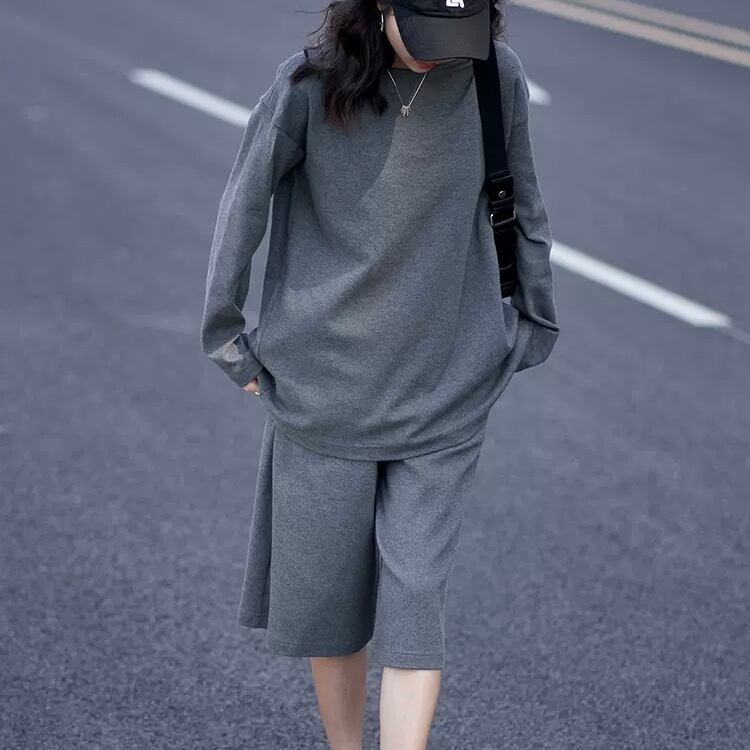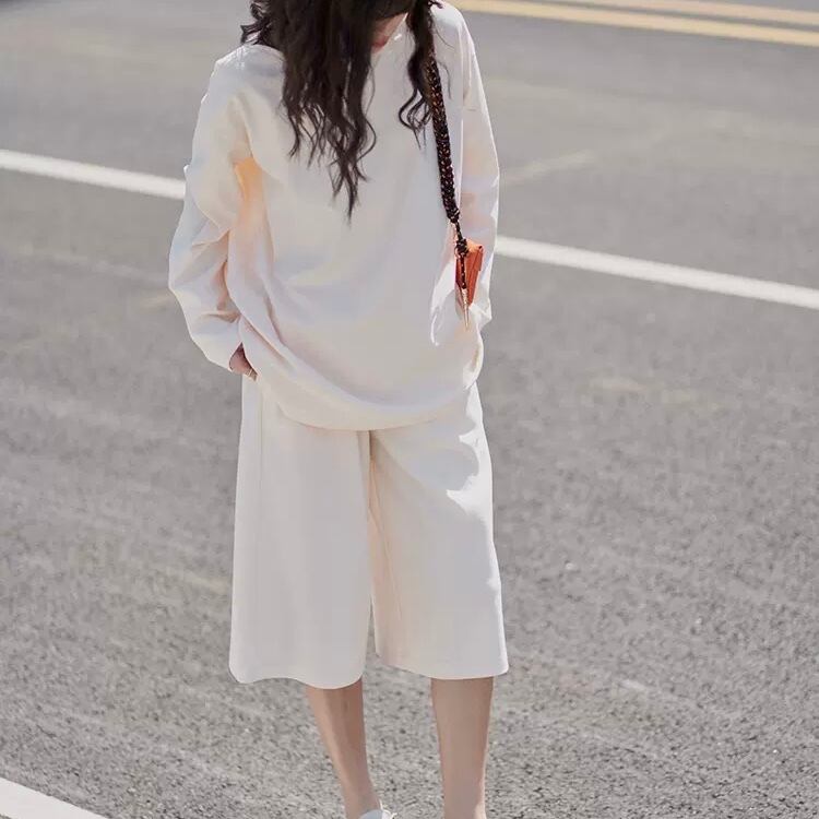 SU-0129 ラウンドネック Tシャツ ハーフパンツ 膝丈 長袖 セットアップ シンプル きれいめ 可愛い カジュアル お洒落
