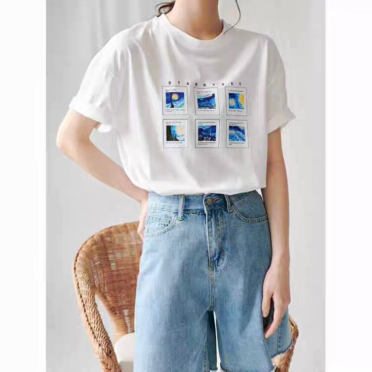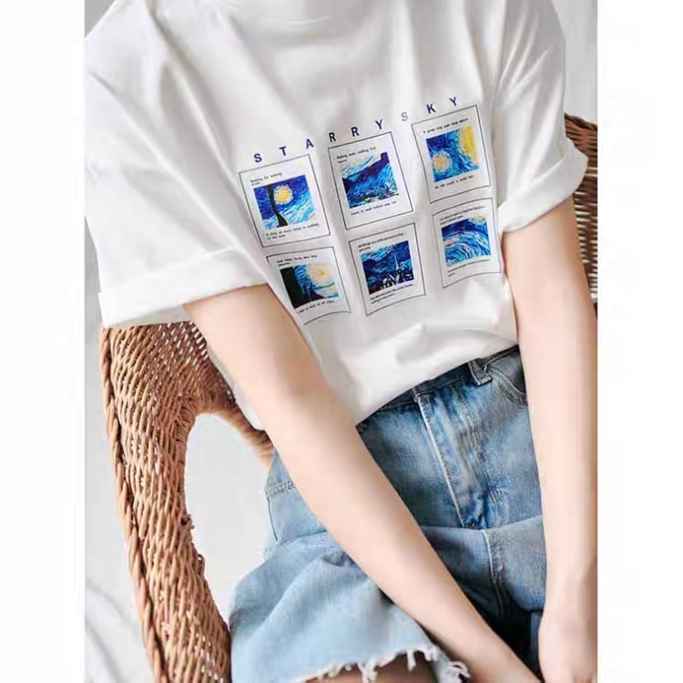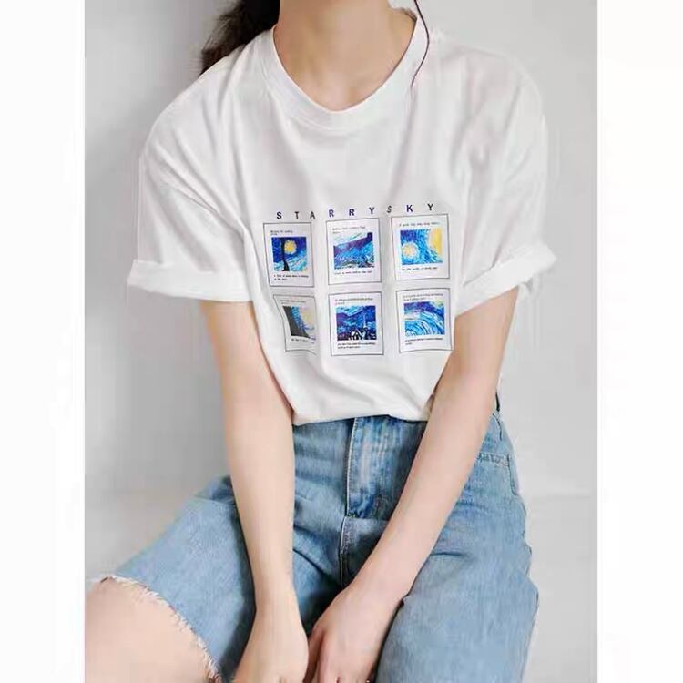 TS-0442 STARRY SKY イラスト プリント フレッシュ 半袖 Tシャツ レディース トップス シンプル 可愛い カジュアル お洒落