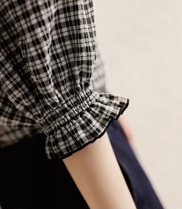 BL-0229 半袖 フレンチガーリー チェック柄 ブラウス シャツ カジュアル レディース トップス シンプル 可愛い カジュアル お洒落