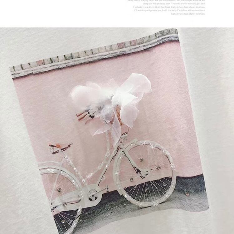 TS-0447 自転車 プリント 半袖 Tシャツ レディース トップス シンプル 可愛い カジュアル お洒落
