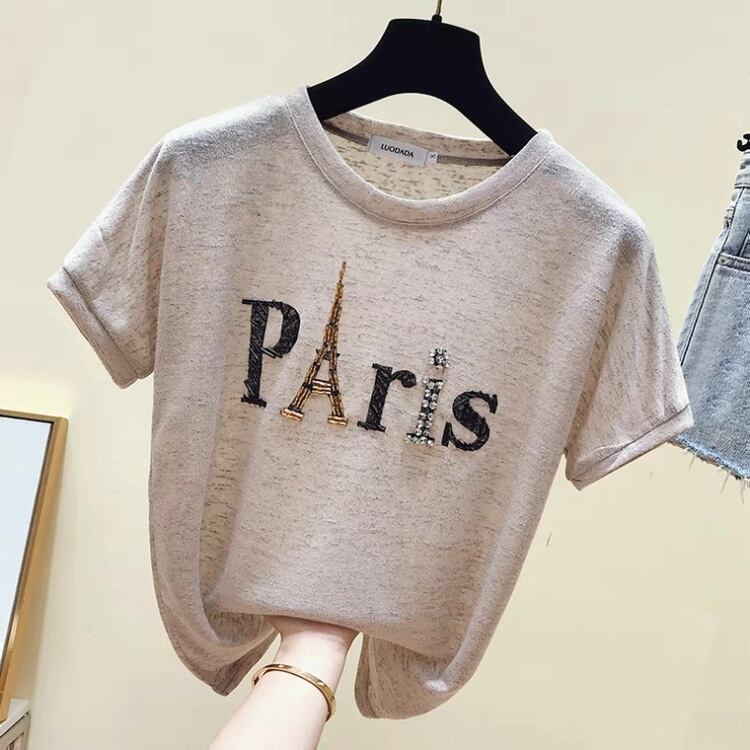 TS-0448 Paris プリント 半袖 Tシャツ レディース トップス シンプル 可愛い カジュアル お洒落