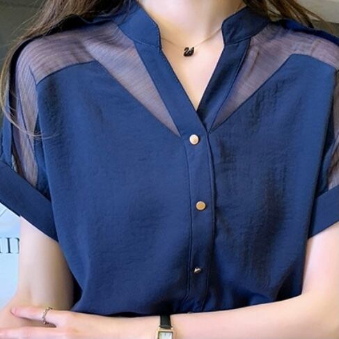 TS-0452 シフォン シャツ レディース 半袖 Vネック トップス シンプル 可愛い カジュアル お洒落