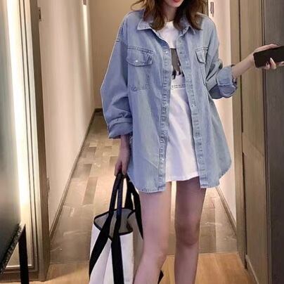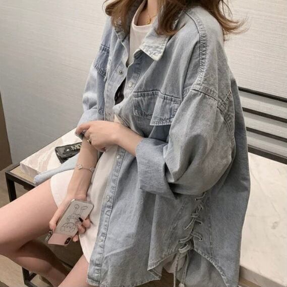 BL-0240 デニム シャツ レディース サイドレースアップ 長袖 トップス シンプル 可愛い カジュアル お洒落