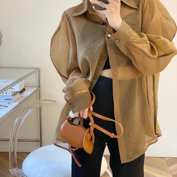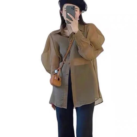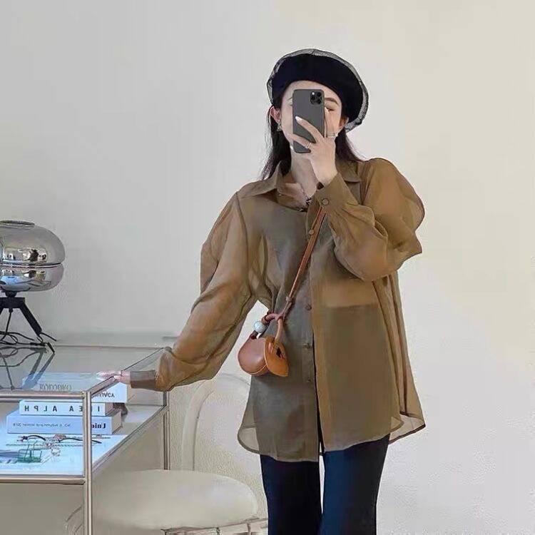 BL-0241 シフォン シースルー シャツ レディース 長袖 トップス シンプル 可愛い カジュアル お洒落