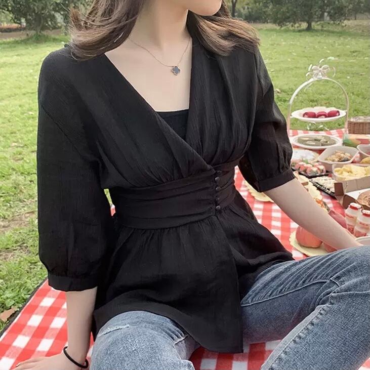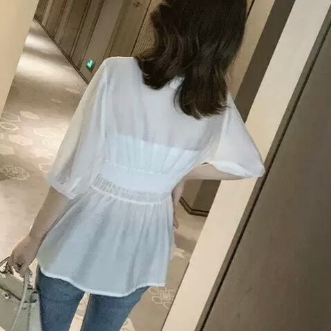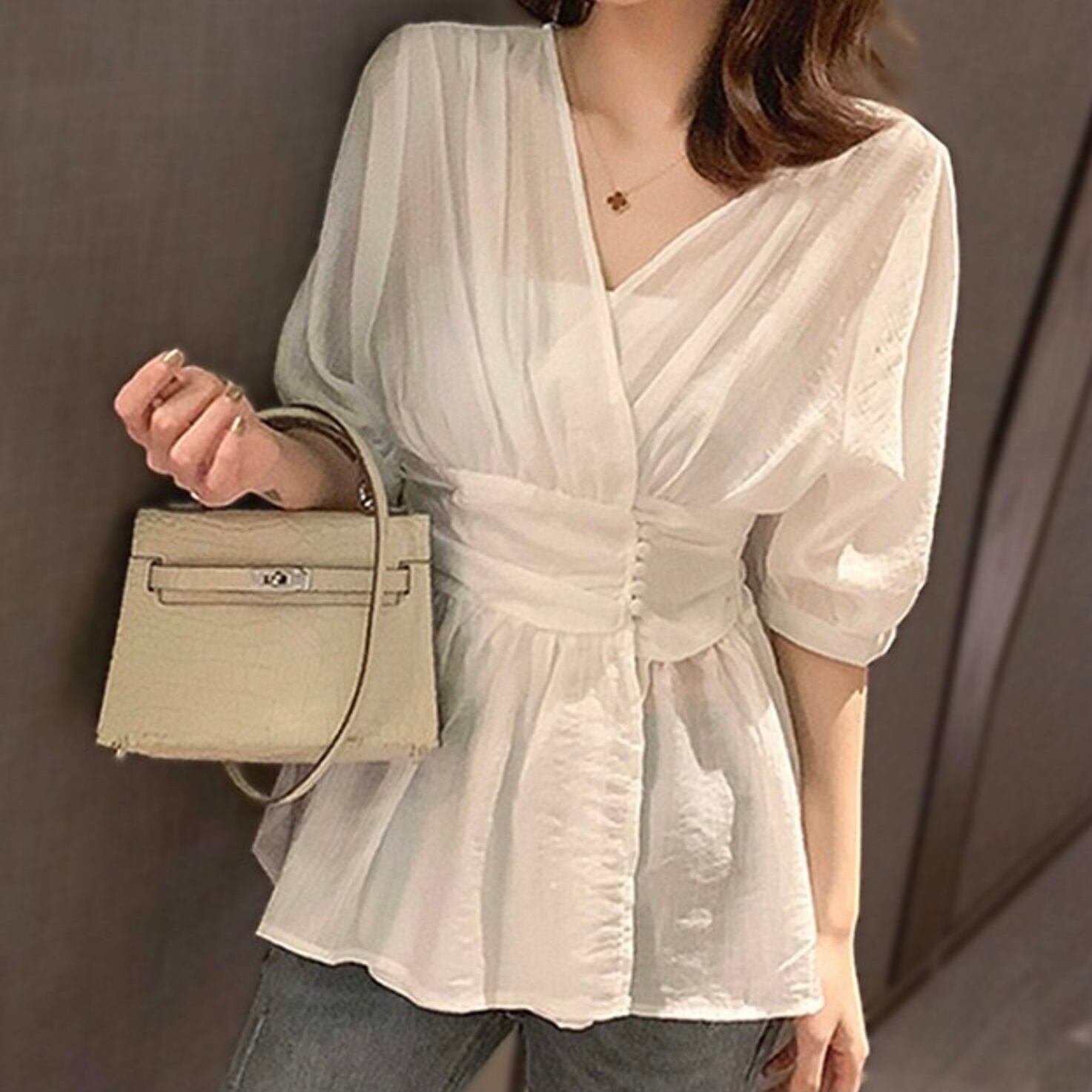 TS-0462 Vネック フェアリー ホワイト シャツ トップス シンプル 可愛い カジュアル お洒落 上品