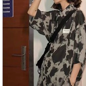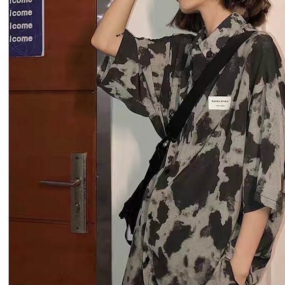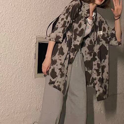BL-0245 タイダイ柄 グレー シャツ レディース 半袖 長袖 トップス シンプル 可愛い カジュアル お洒落