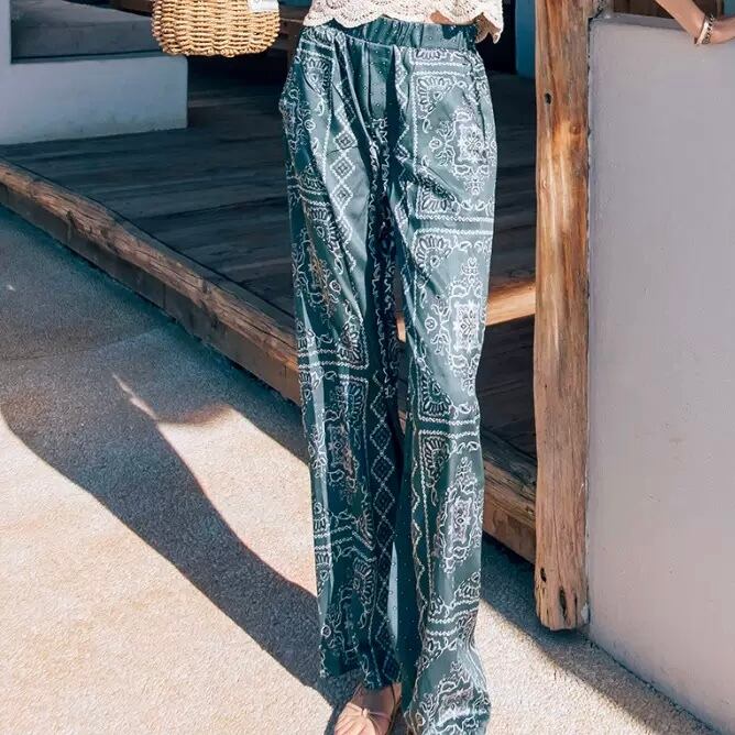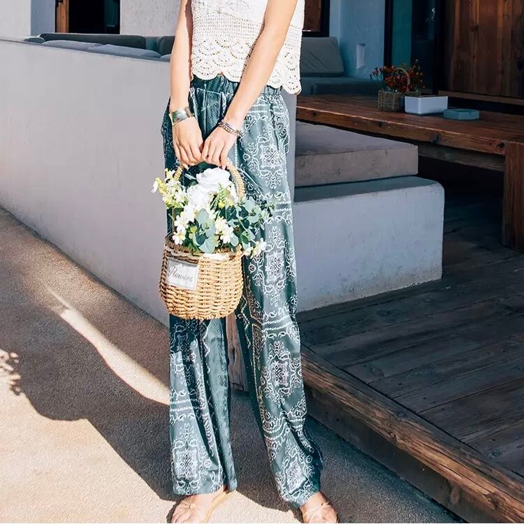 PT-0173 エスニック パンツ バケーション サマー ルーズパンツ ストレート 楽ちん レディース ハイウエスト きれいめ 可愛い お洒落 シンプル