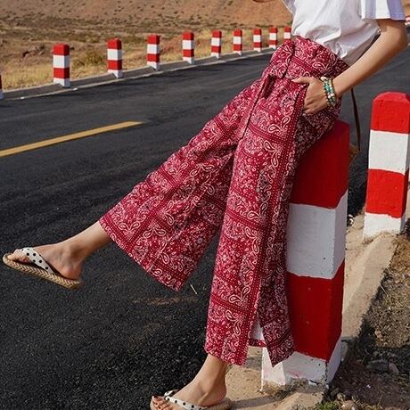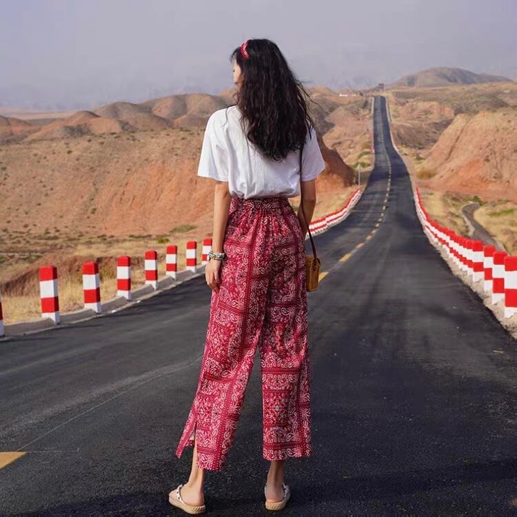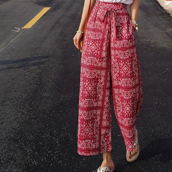 PT-0175 エスニック バンダナ柄 ワイド パンツ ルーズパンツ ストレート 楽ちん レディース ハイウエスト きれいめ 可愛い お洒落 シンプル