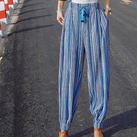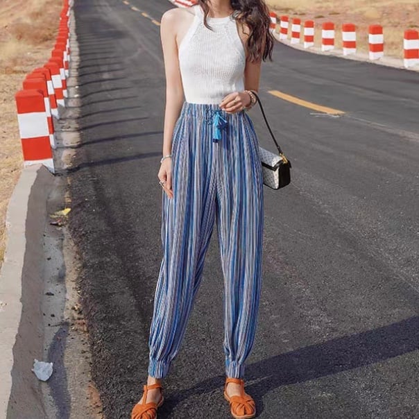 PT-0176 エスニック ストライプ サルエルパンツ パンツ 楽ちん レディース ハイウエスト きれいめ 可愛い お洒落 シンプル