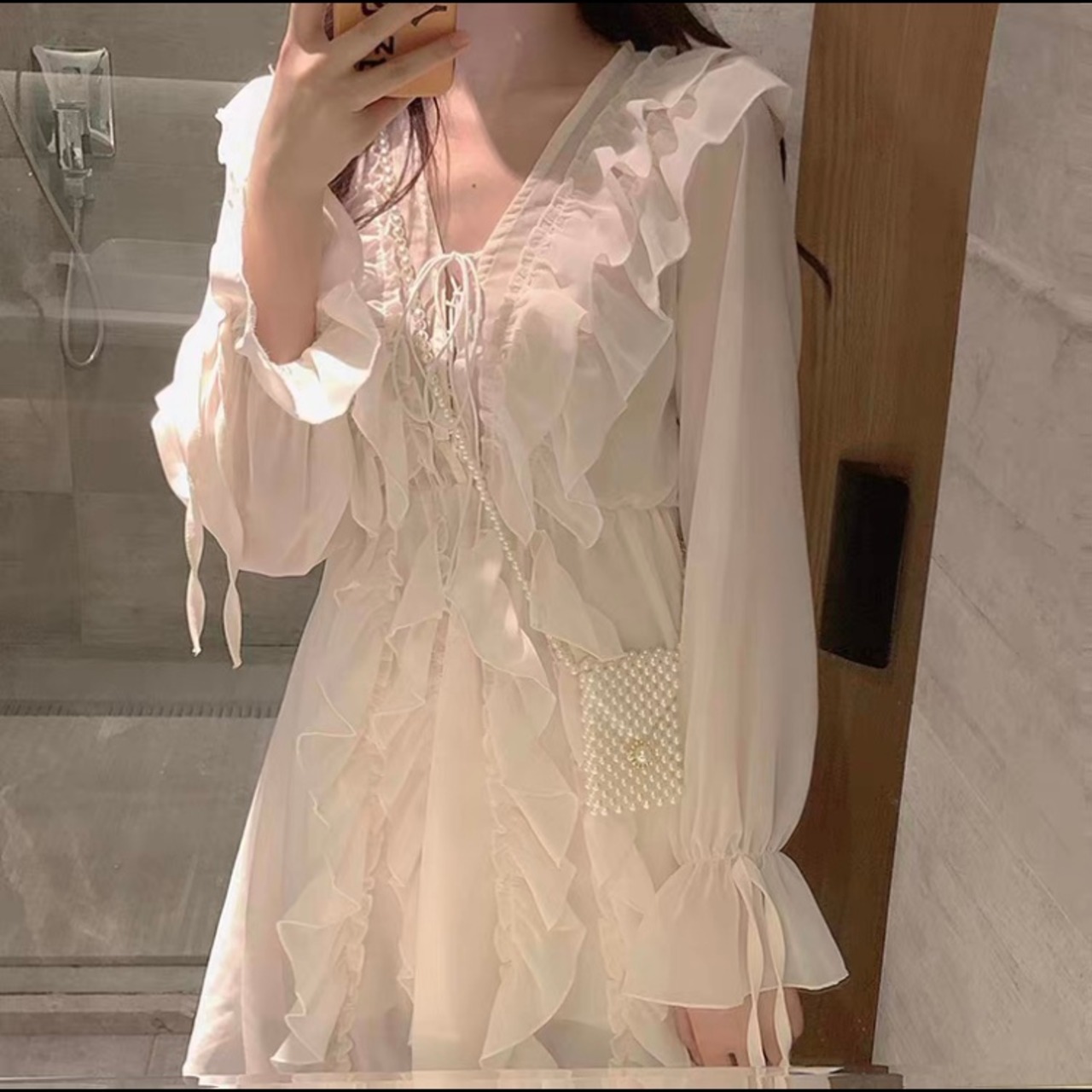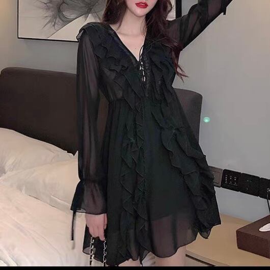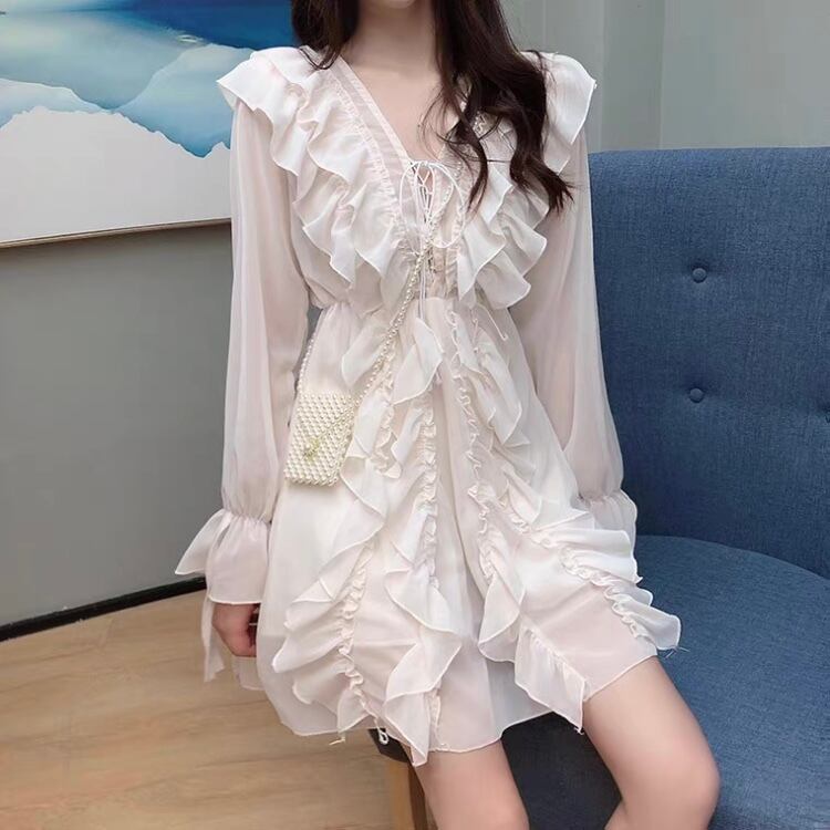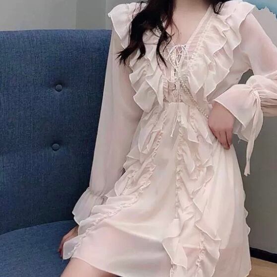 OP-0060 シフォン フリル ワンピース オールインワン レディース ショート丈 シンプル きれいめ 可愛い カジュアル お洒落 長袖