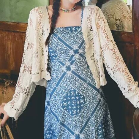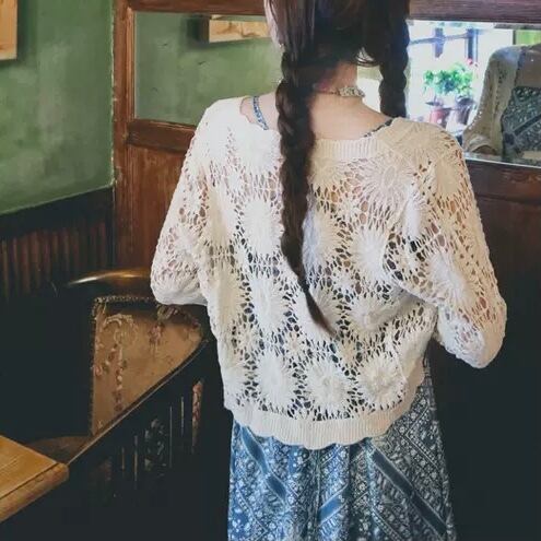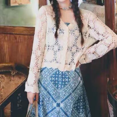 TS-0470 花柄 ニット カーディガン レトロ カジュアル レディース トップス シンプル 可愛い カジュアル お洒落 上品