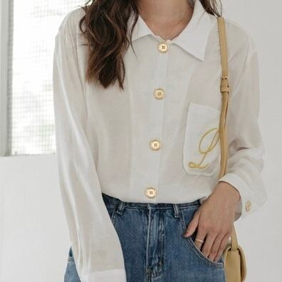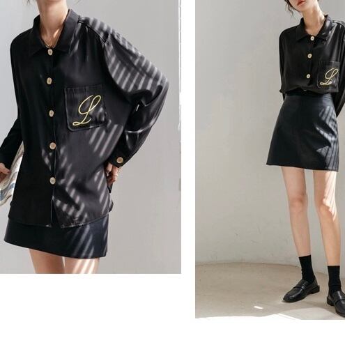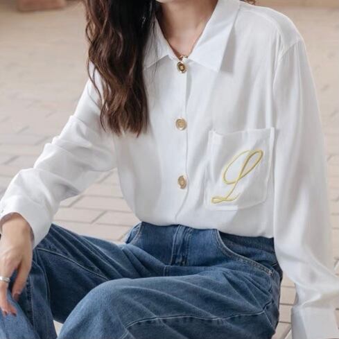 BL-0249 レトロ シャツ ルーズ サテン アルファベット クール レディース 長袖 トップス シンプル 可愛い カジュアル お洒落