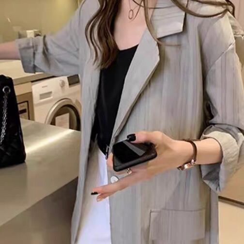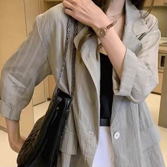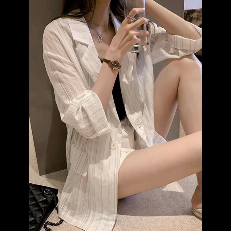JK-0168 ストライプ ジャケット 7分丈 きれいめ レディース トップス シンプル 可愛い カジュアル お洒落