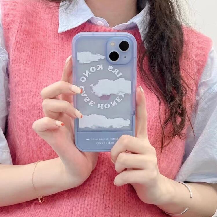 KT-0393 くすみブルー 雲 クリア シンプル iPhone スマホケース お洒落 ユニーク キュート 可愛い