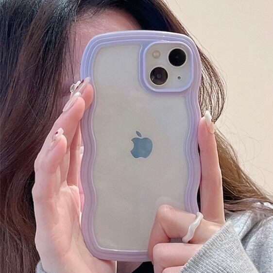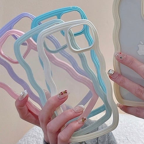 KT-0394 パステルカラー ウェーブフレーム クリア シンプル iPhone スマホケース お洒落 ユニーク キュート 可愛い
