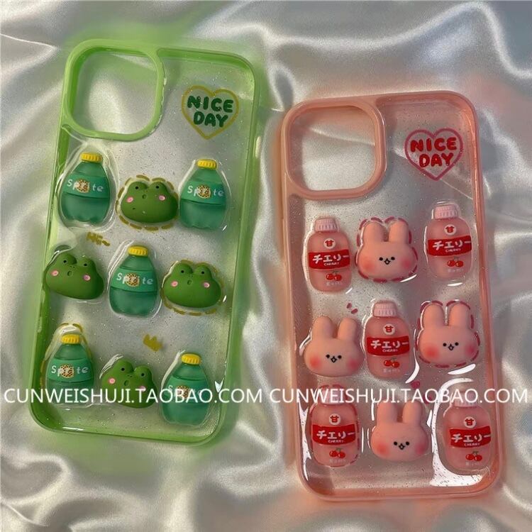 KT-0399 カエル ウサギ 立体 ドリンク クリア シンプル iPhone スマホケース お洒落 ユニーク キュート 可愛い