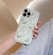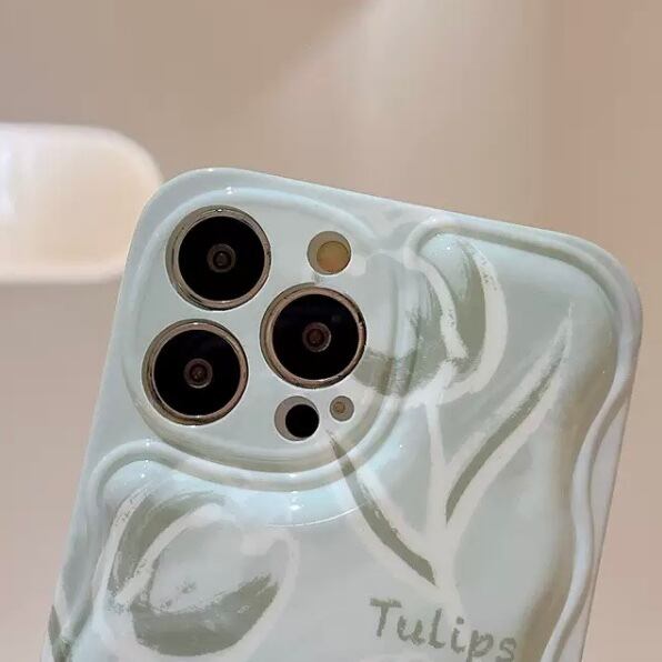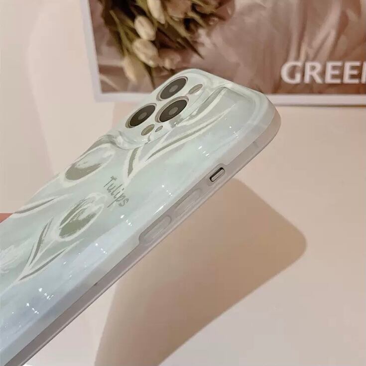 KT-0402 グリーン チューリップ アート シンプル iPhone スマホケース お洒落 ユニーク キュート 可愛い カジュアル