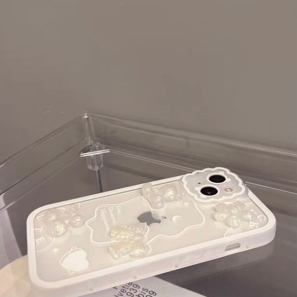 KT-0409 オーロラ ベアー フラワー リボン 立体 上品 クリア シンプル iPhone スマホケース お洒落 キュート 可愛い ガーリー