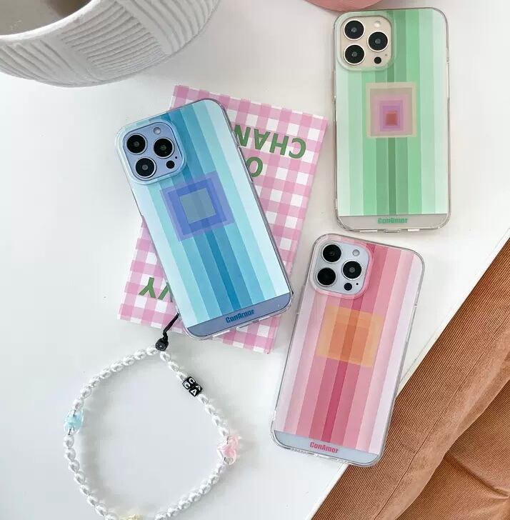 KT-0411 カラー ストライプ グラデーション シンプル iPhone スマホケース お洒落 キュート 可愛い ガーリー