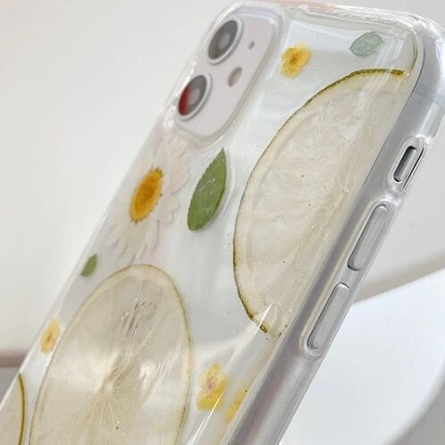 KT-0416 レモン 花 デイジー シンプル iPhone スマホケース お洒落 キュート 可愛い クリア