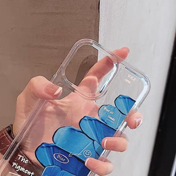 KT-0423 ブルー 絵の具 油絵 アート クリア シンプル iPhone スマホケース お洒落 キュート 可愛い ユニーク