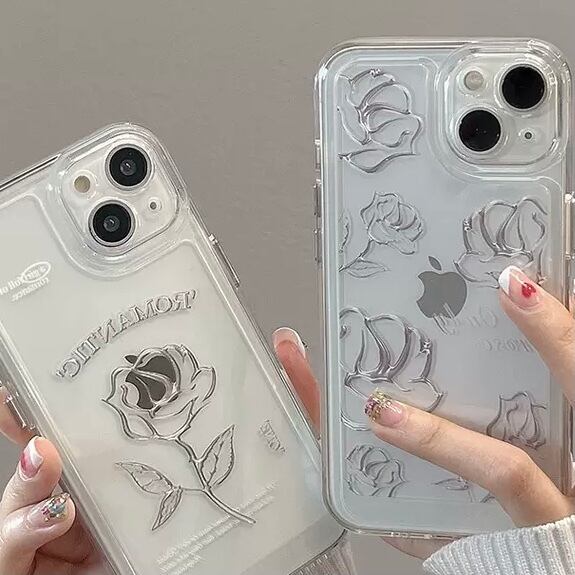 KT-0429 韓国風 バラ シルバー クリア シンプル iPhone スマホケース お洒落 キュート 可愛い