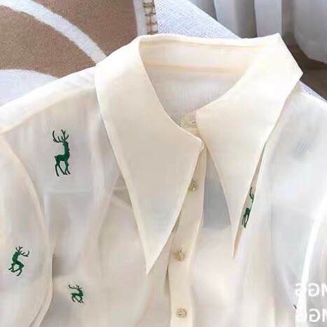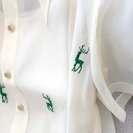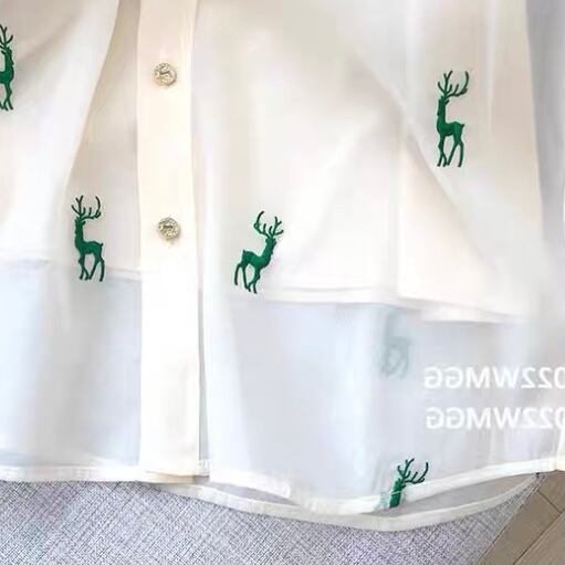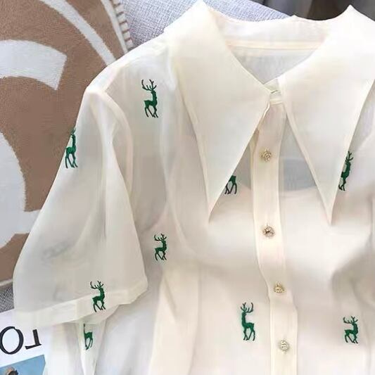 BL-0253 シフォン シャツ シースルー 半袖 鹿柄 レディース トップス シンプル 可愛い カジュアル お洒落
