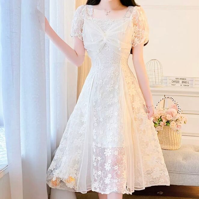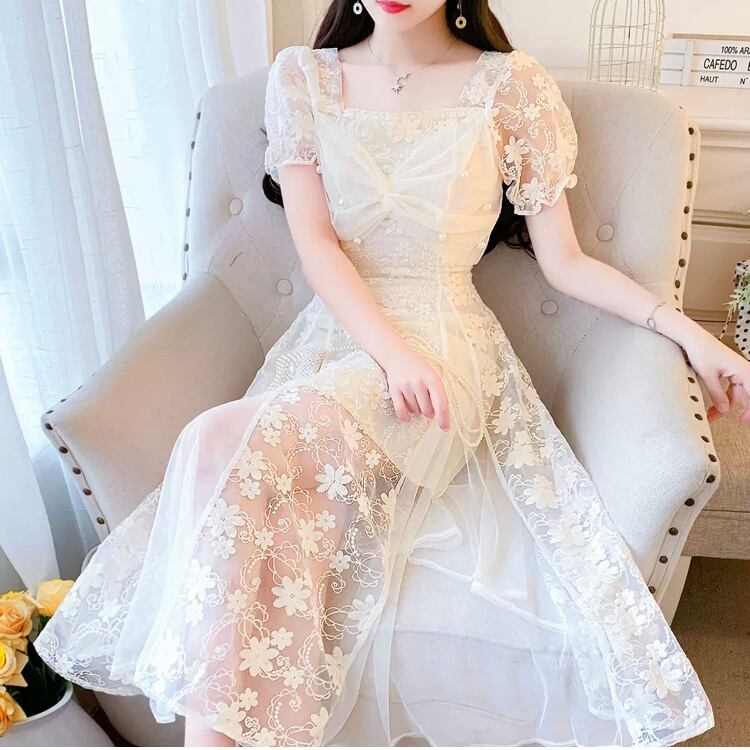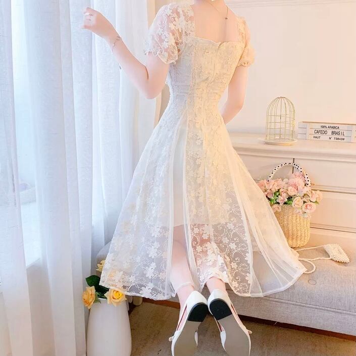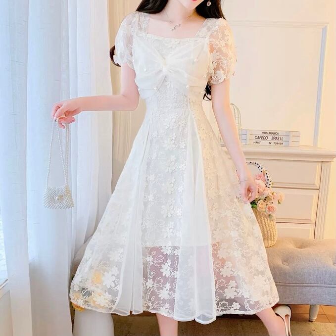 OP-0067 フェアリー ガーリー 小花柄 レース ロング丈 シースルー ワンピース オールインワン レディース シンプル きれいめ 可愛い お洒落 半袖