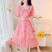 OP-0069 フローラル オーロラハート 襟付き プリかわ ガーリー 膝下丈 ワンピース オールインワン レディース シンプル 可愛い お洒落 半袖
