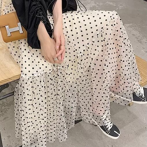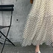 SK-0146 スカート ドット柄 メッシュ Aライン ロング丈 きれいめ 可愛い カジュアル 春 夏