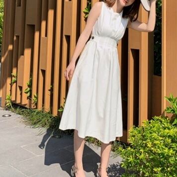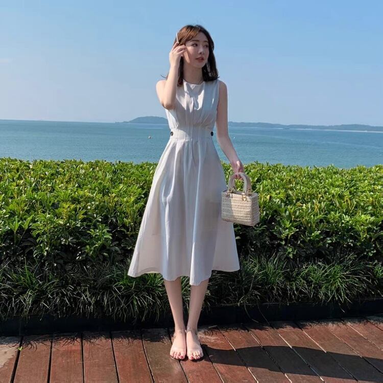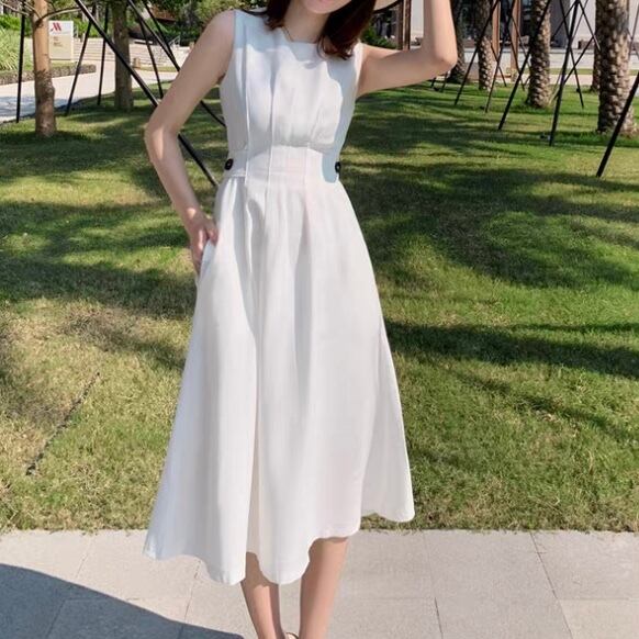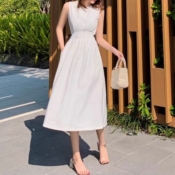 OP-0078 ノースリーブ ベスト ハイウエスト ワンピース 膝下丈 オールインワン レディース シンプル 可愛い お洒落 春夏