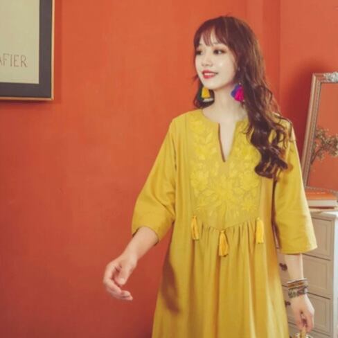 OP-0080 エスニック 5分丈 ワンピース ロング丈 オールインワン レディース シンプル 可愛い お洒落 カジュアル