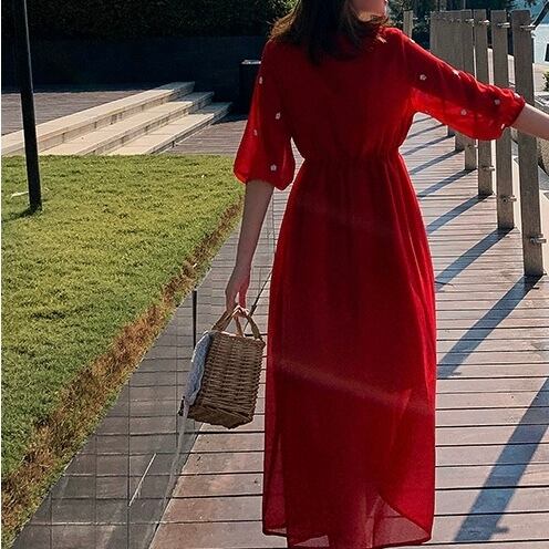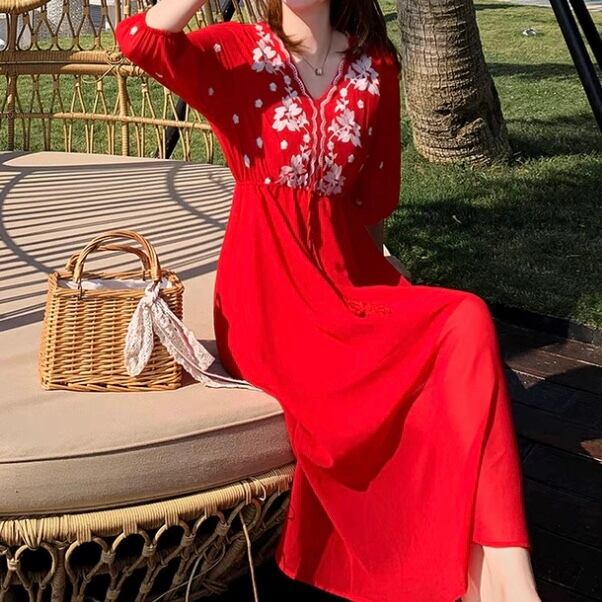 ▫️刺繍レッドワンピース
