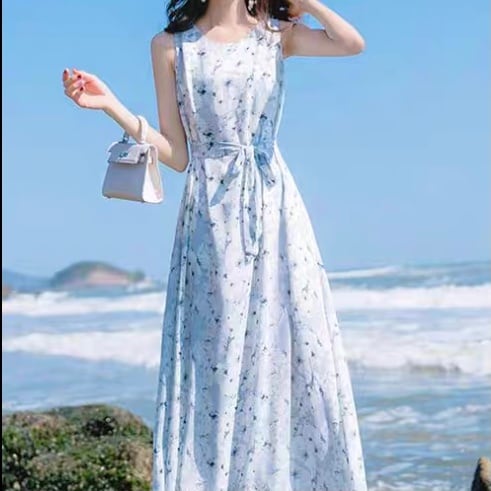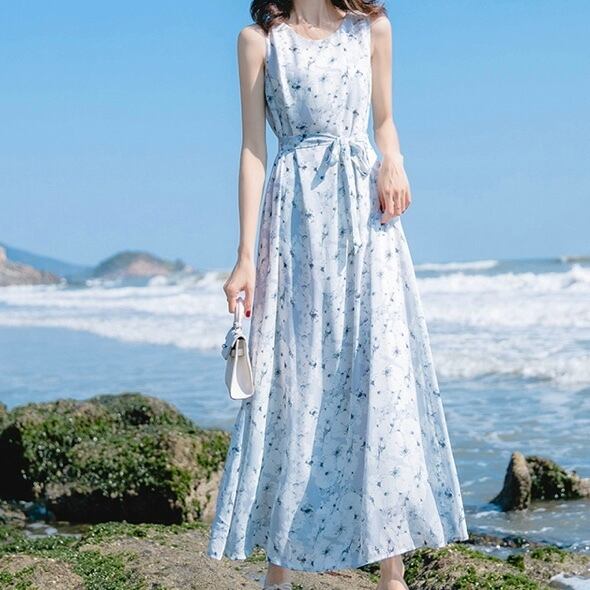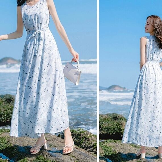 OP-0084 ノースリーブ フェアリー フラワー ロング丈 ワンピース オールインワン シンプル 可愛い お洒落 カジュアル